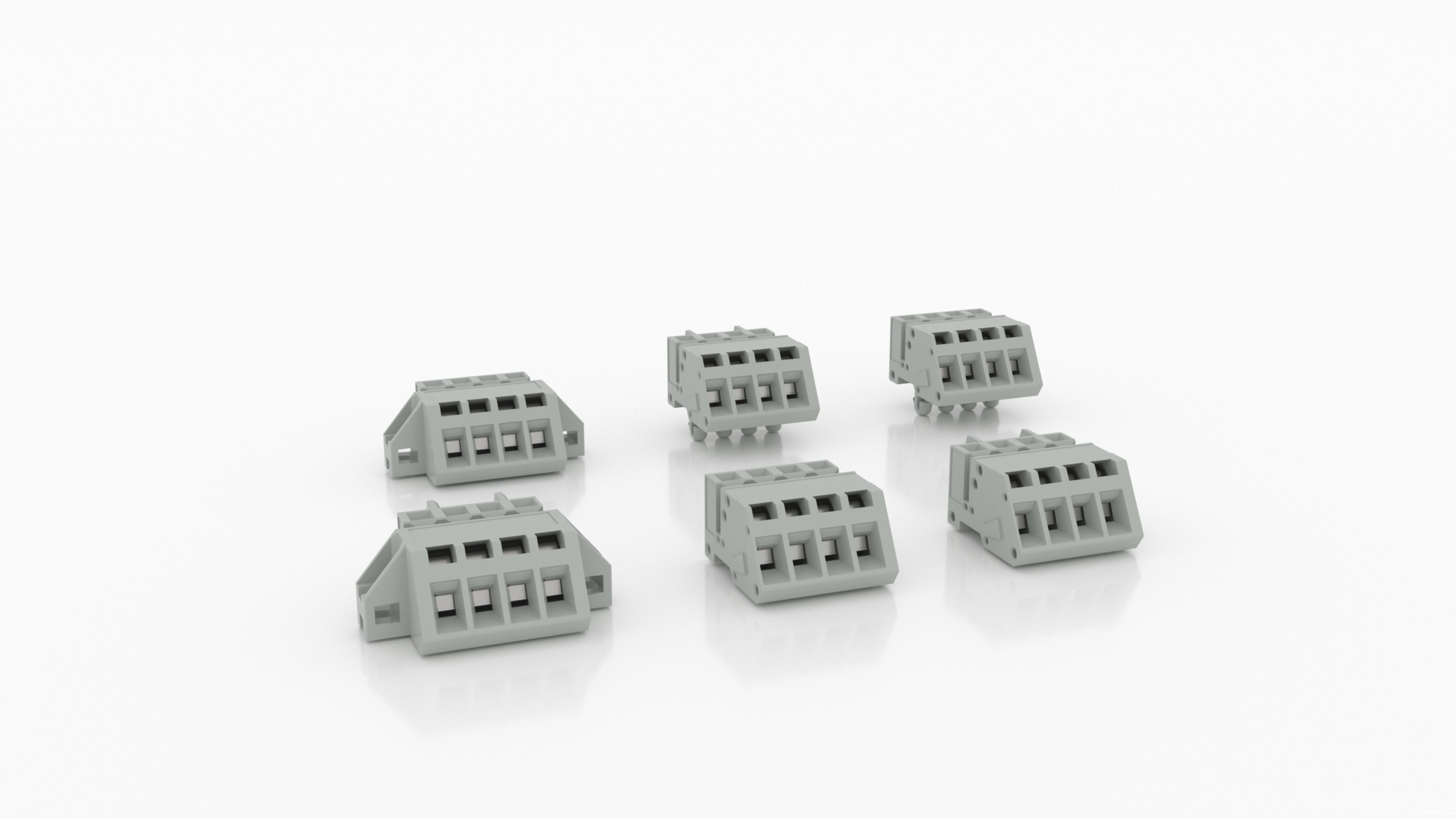 - 竖直连接可实现在PCB上多排布局。附加的焊针可降低焊接点上的机械应力。