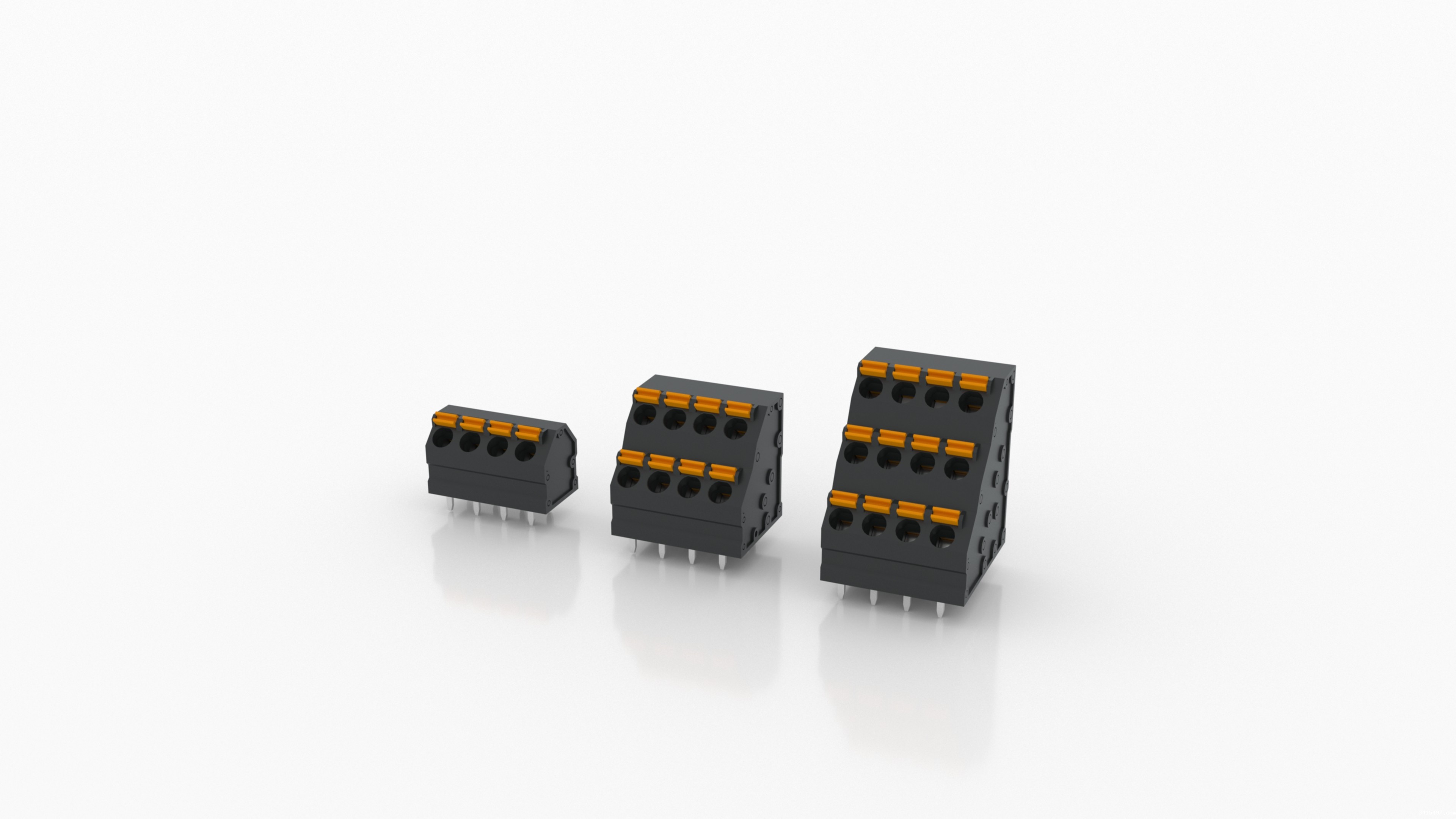 - 节省空间的单,多层PCB接线端子,带有推压键;