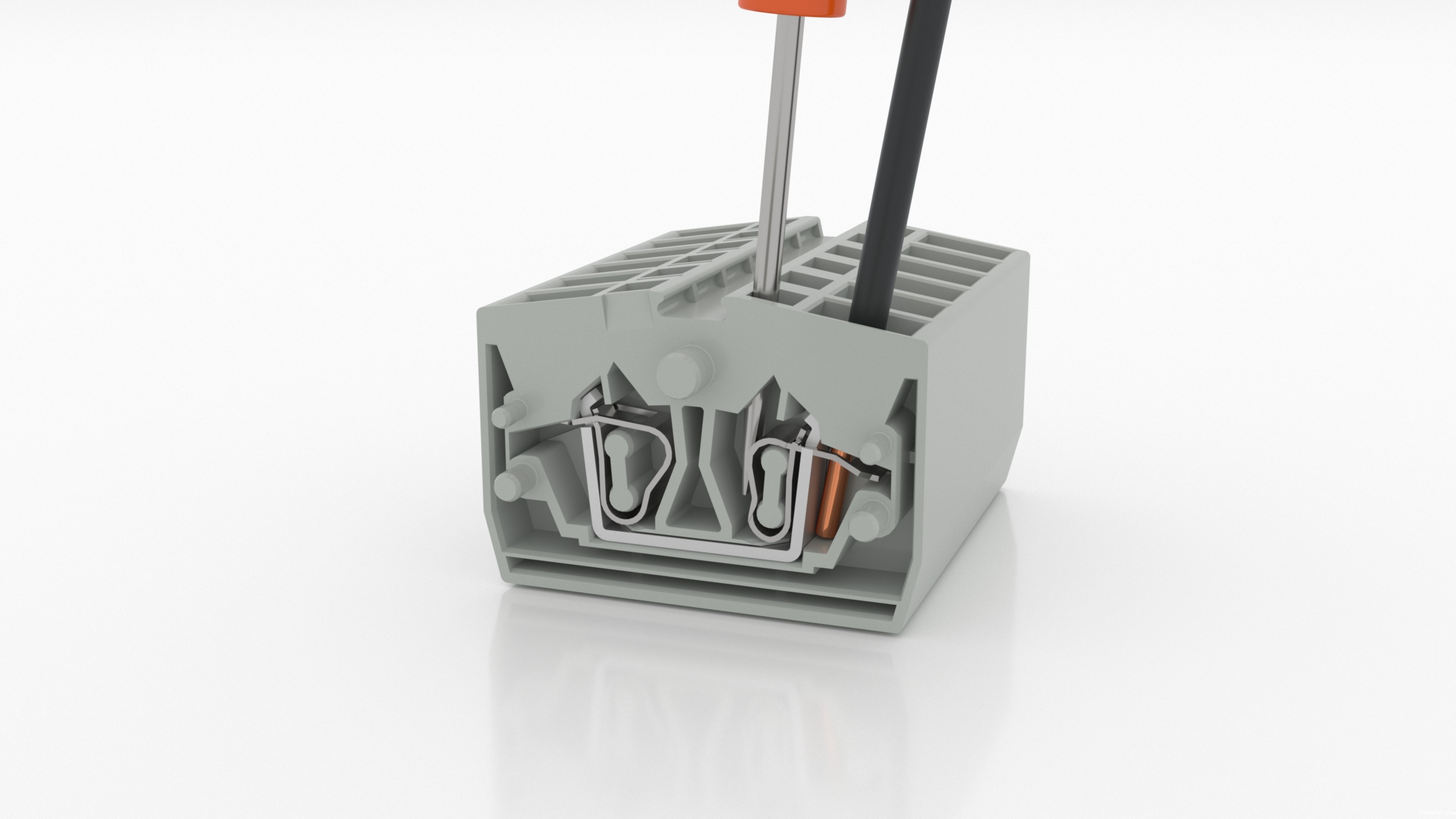 导线可顺利插入接线位,松开并退出螺丝刀,可实现导线与金属导体连接。