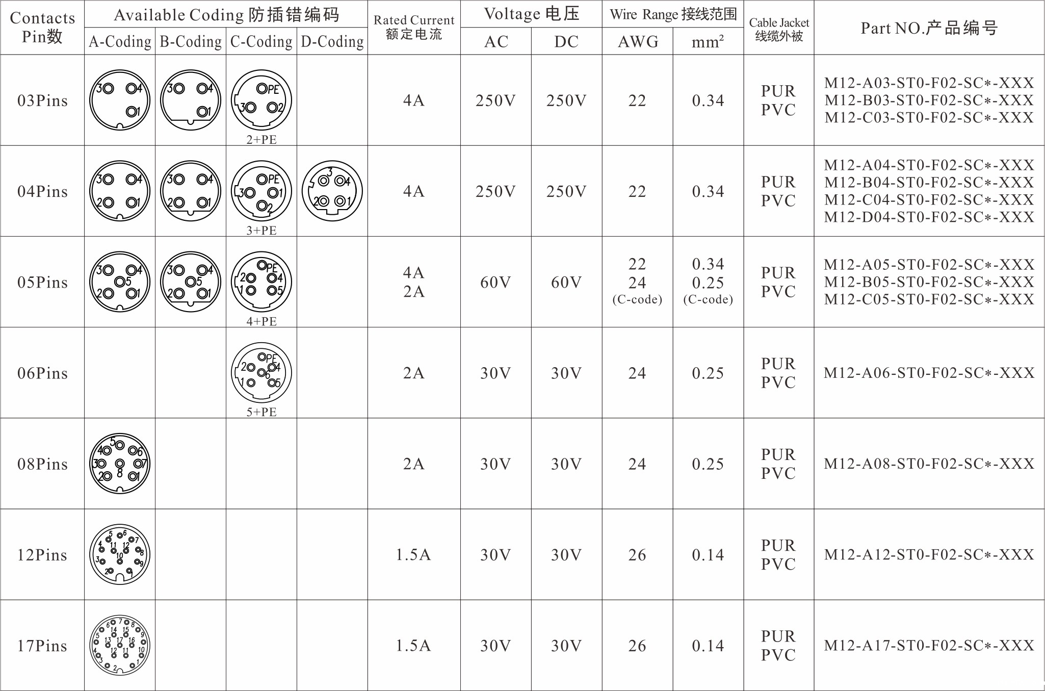 Part No:M12-X**-ST0-F02-SC*-XXX