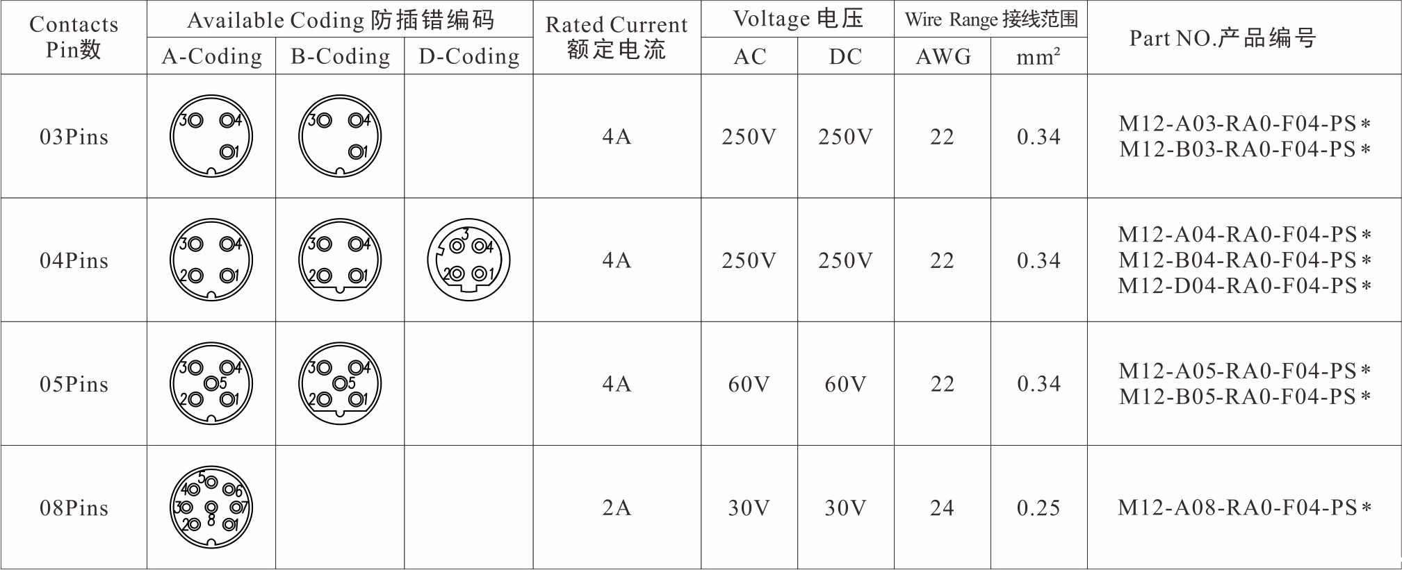 | Wire Range AWG/mm² |