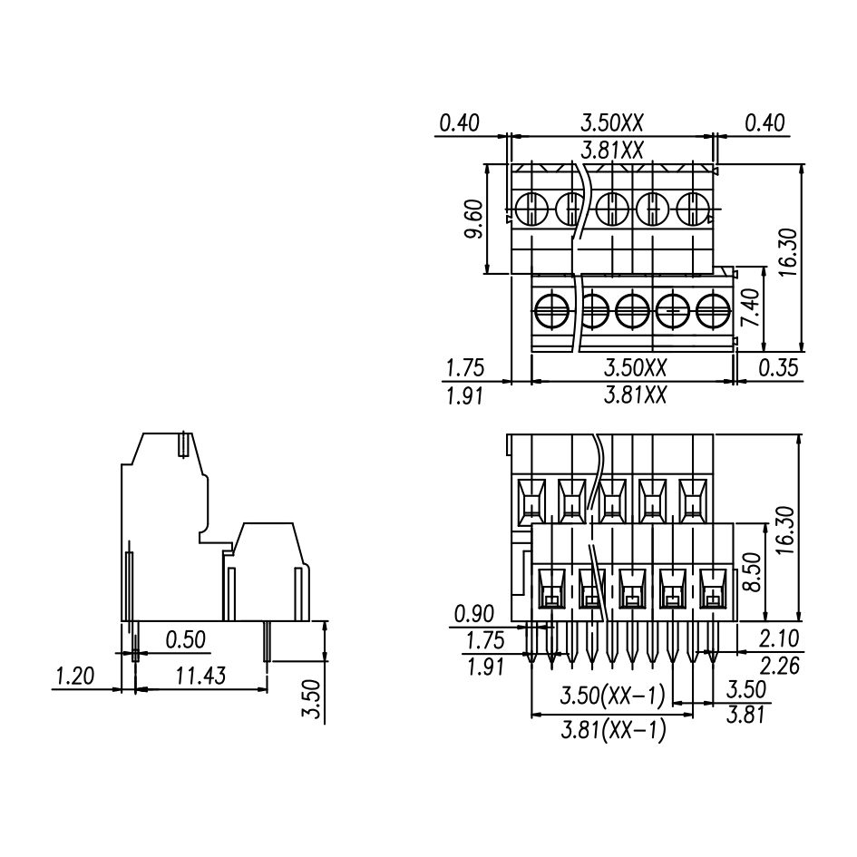 Pitch: 3.5 mm/3.81 mm