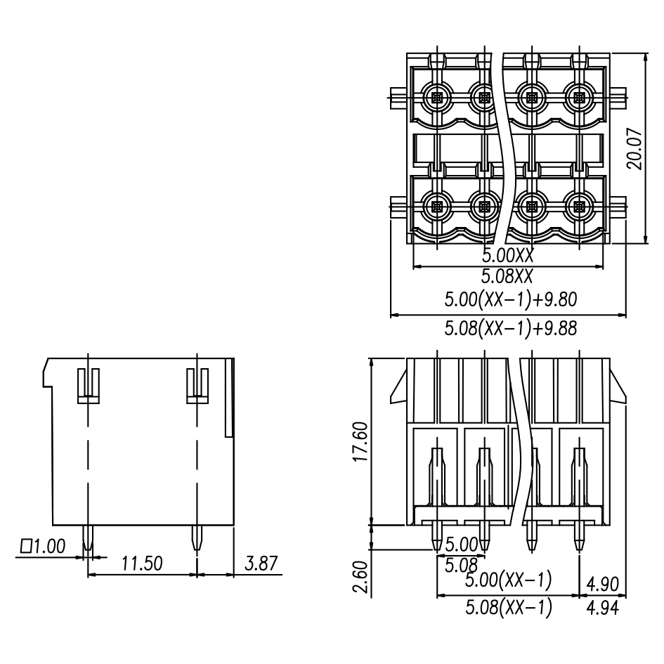 Pitch: 5.0 mm / 5.08 mm