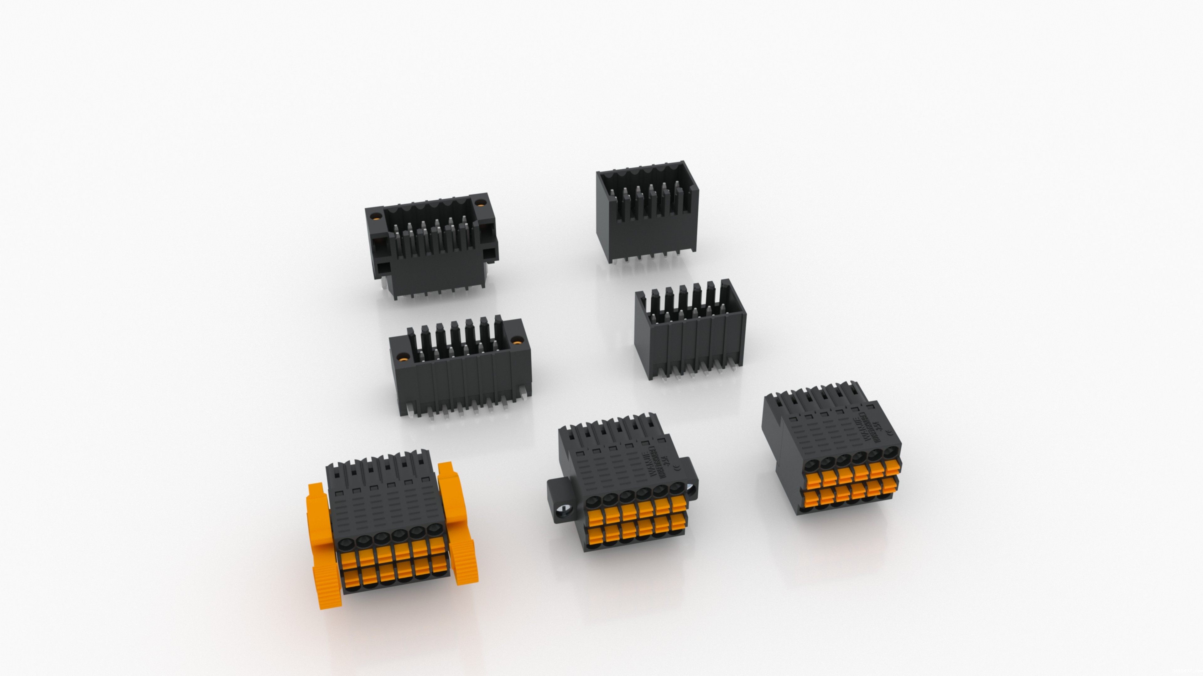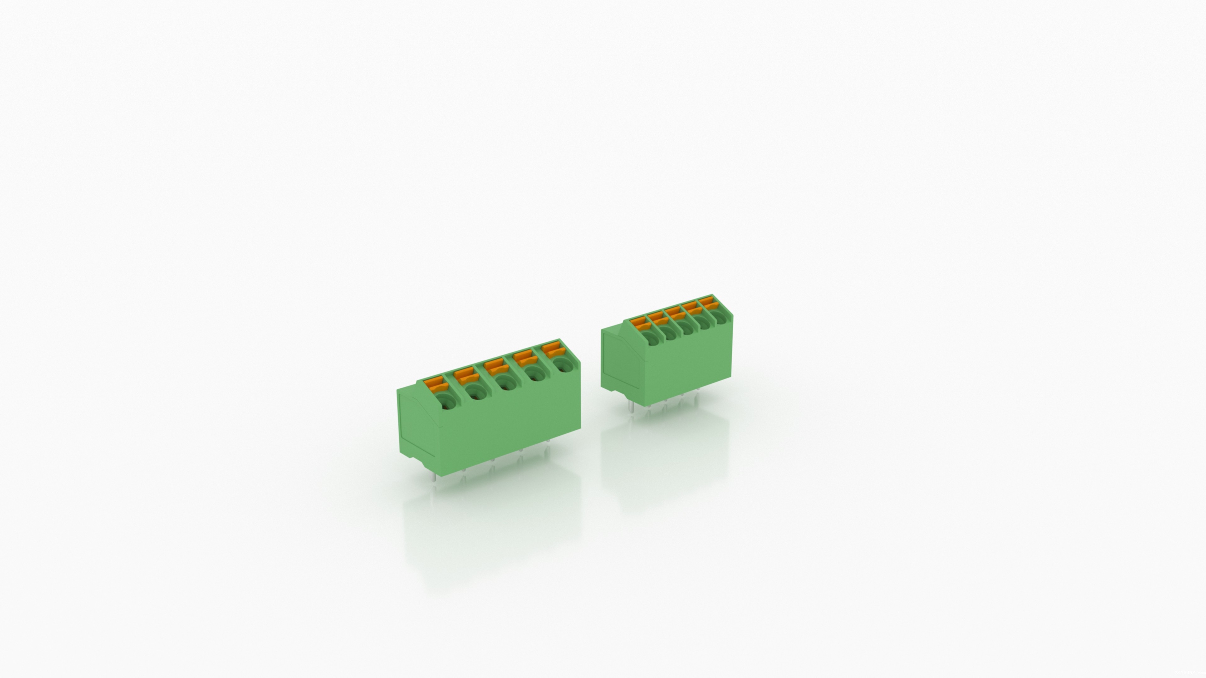 1.节省空间的单,多层PCB接线端子,带有推压键;