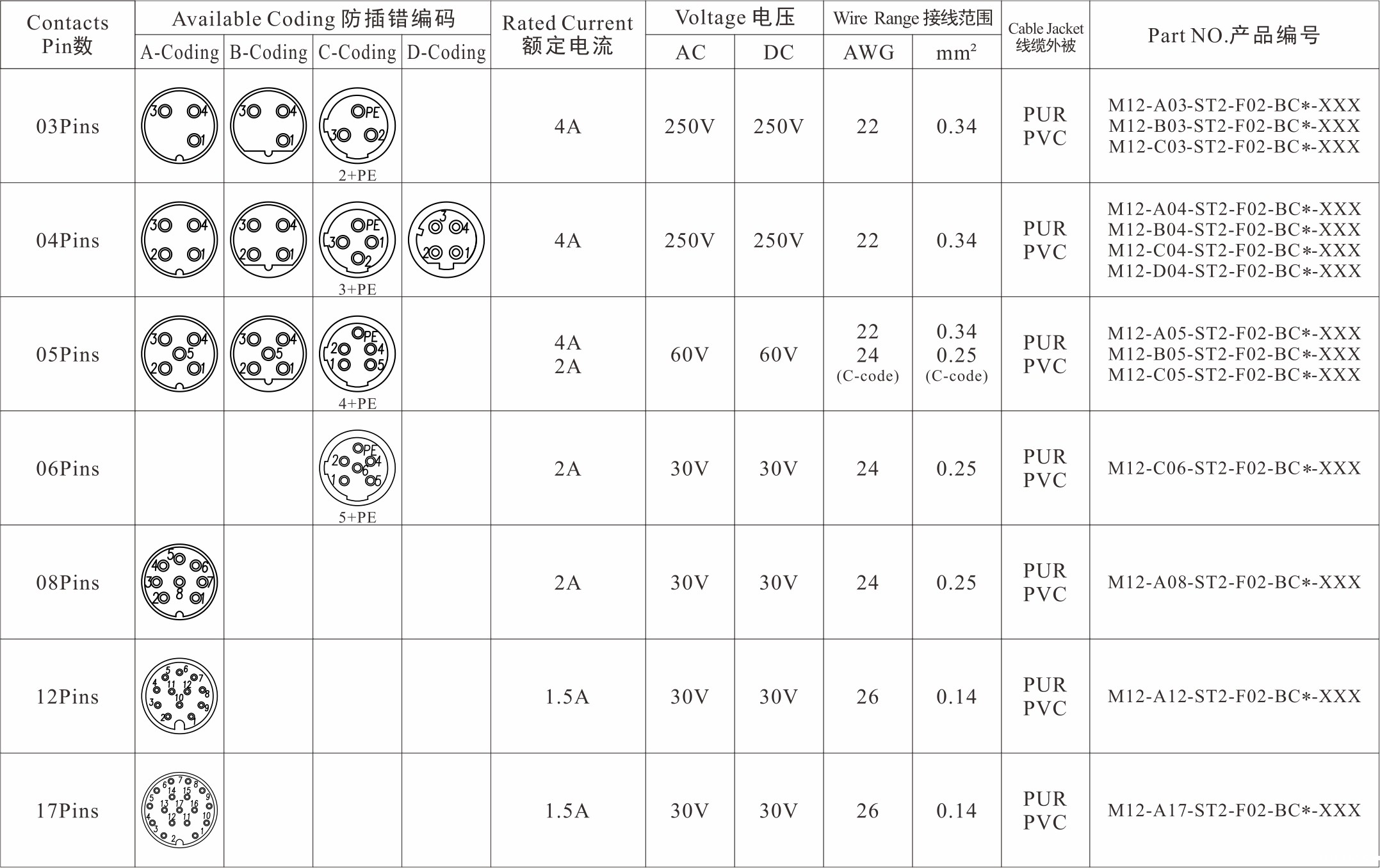 产品编号:M12-X**-ST2-F02-BC*-XXX