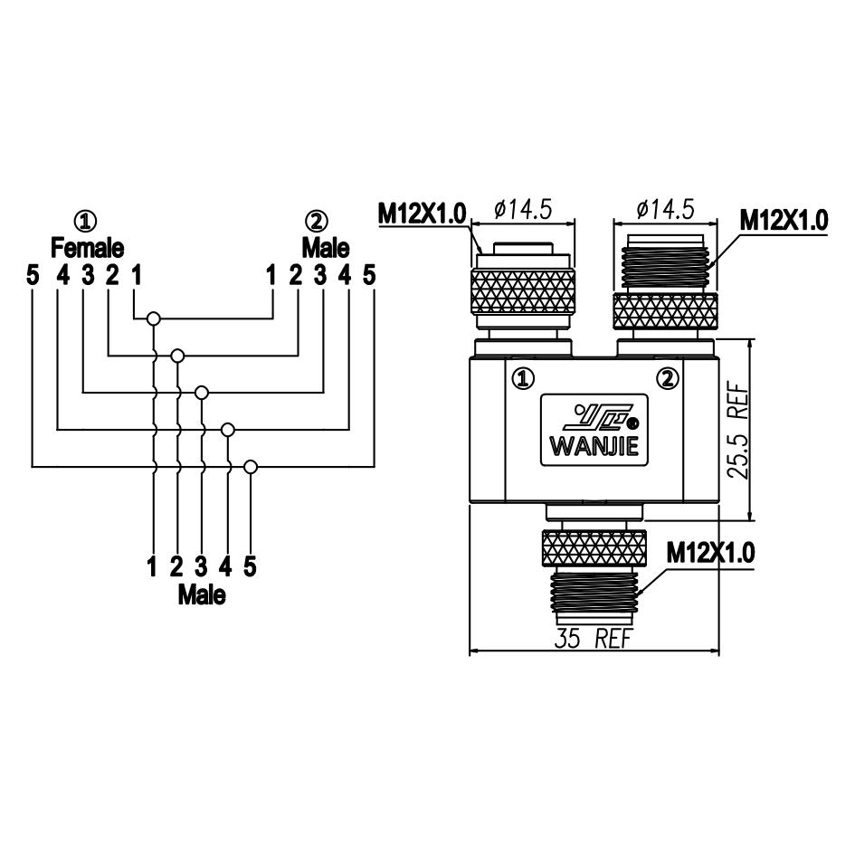 M12 母头面板式,焊接式,前锁安装,焊电子线