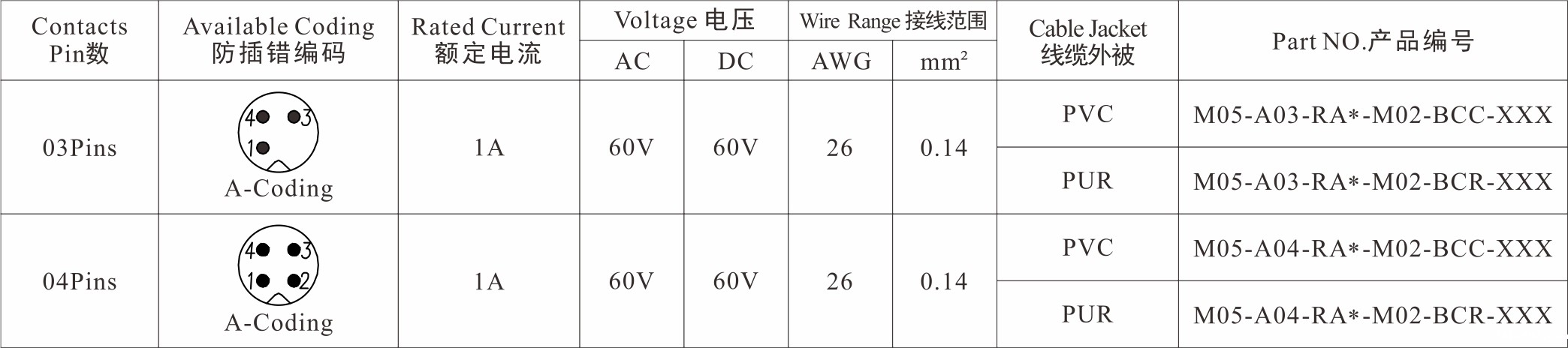 Part No 产品编码:M05-A**-RA0-M02-BC*-XXX