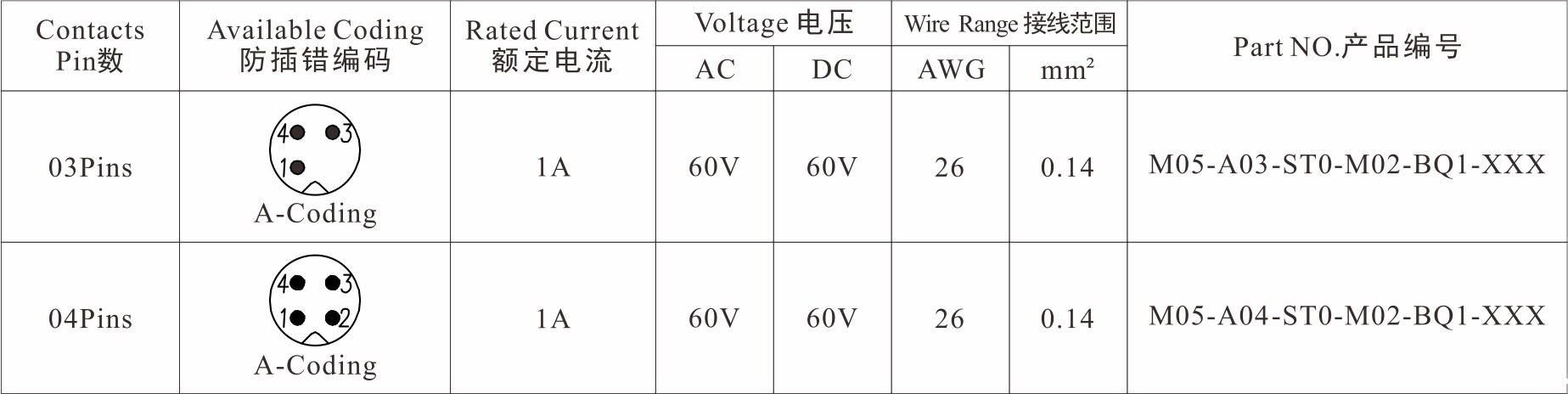 Part No 产品编码:M05-A**-ST0-M02-BQ1-XXX