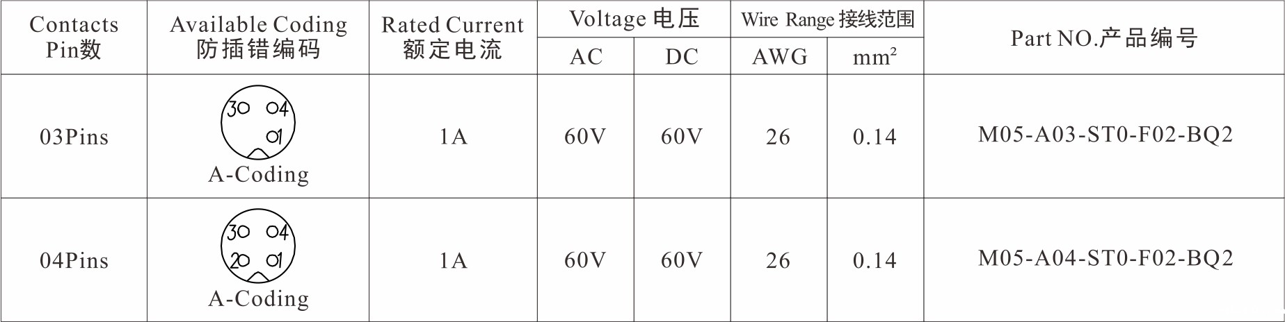 Part No 产品编码:M05-A**-ST0-F02-BQ2
