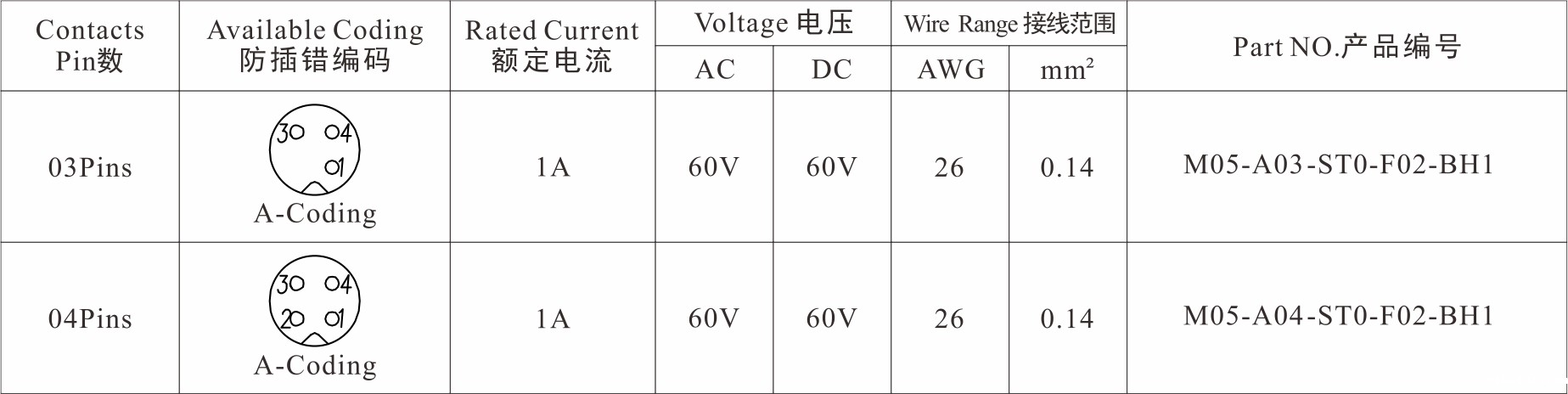 Part No 产品编码:M05-A**-ST0-F02-BH1
