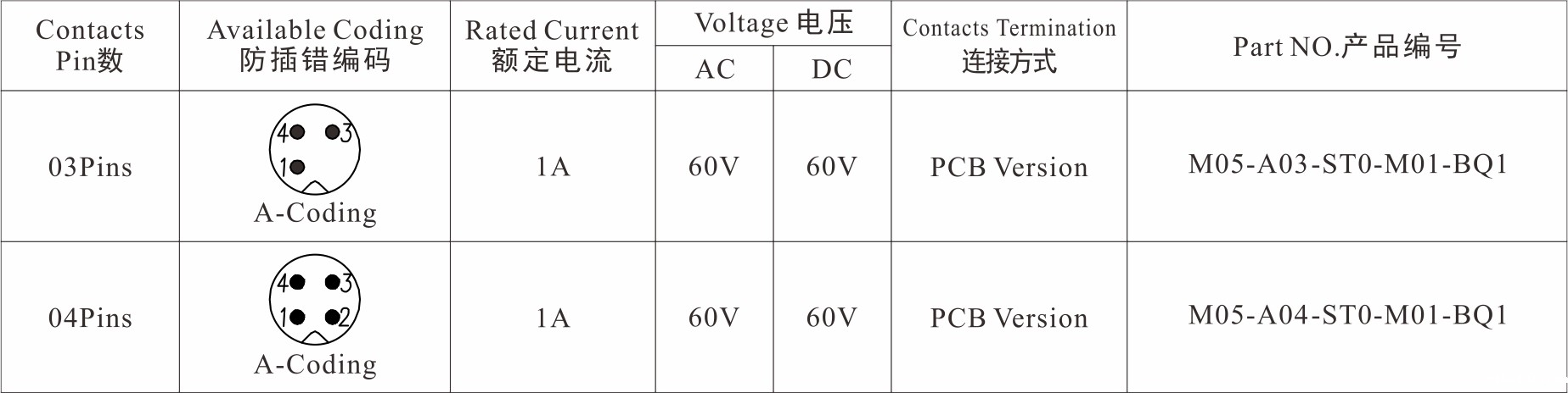 Part No 产品编码:M05-A**-ST0-M01-BQ1