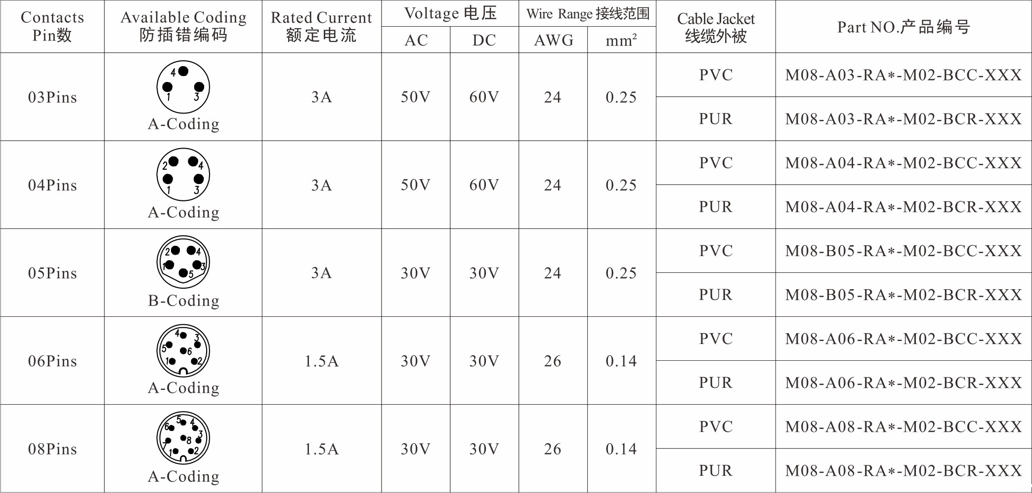 Part No 产品编码:M08-X**-RA0-M02-BC*-XXX