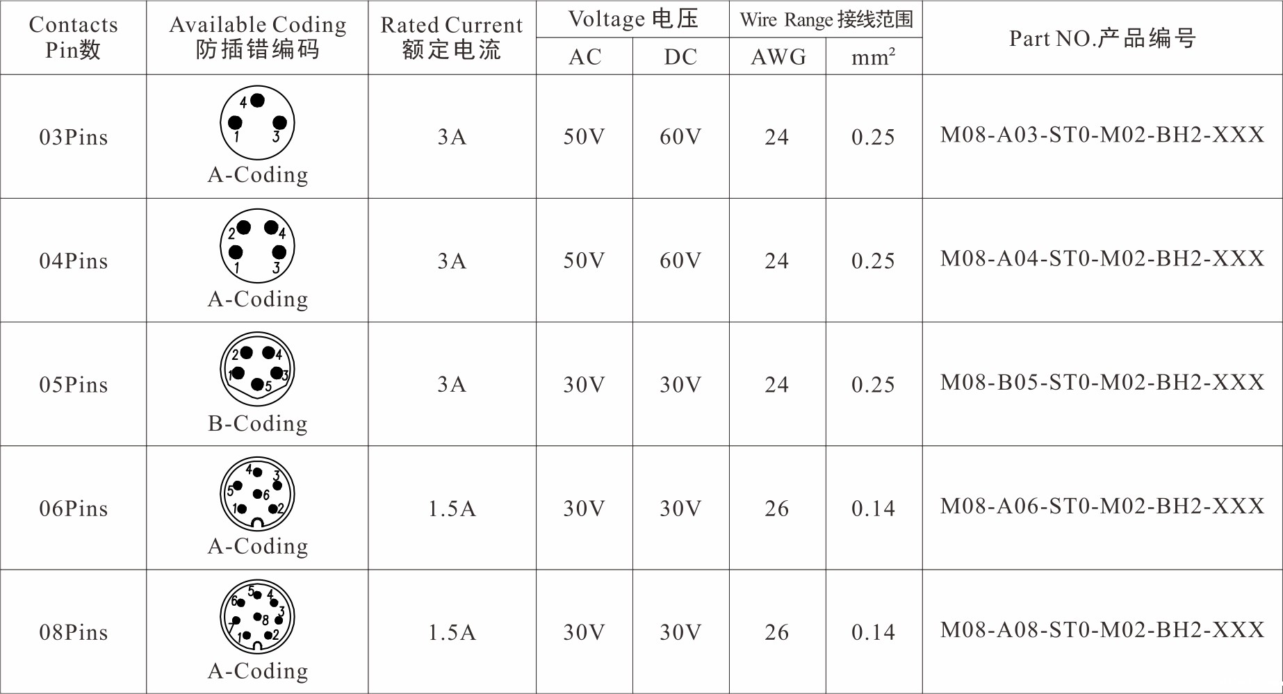 Part No 产品编码:M08-X**-ST0-M02-BH2-XXX