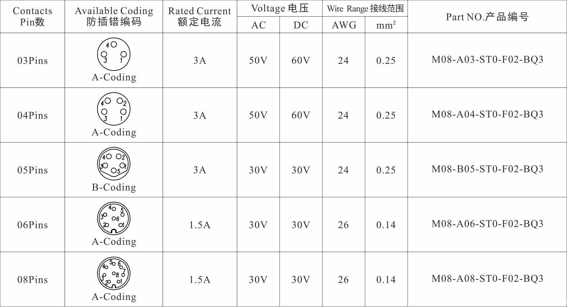 Part No 产品编码:M08-X**-ST0-F02-BQ3