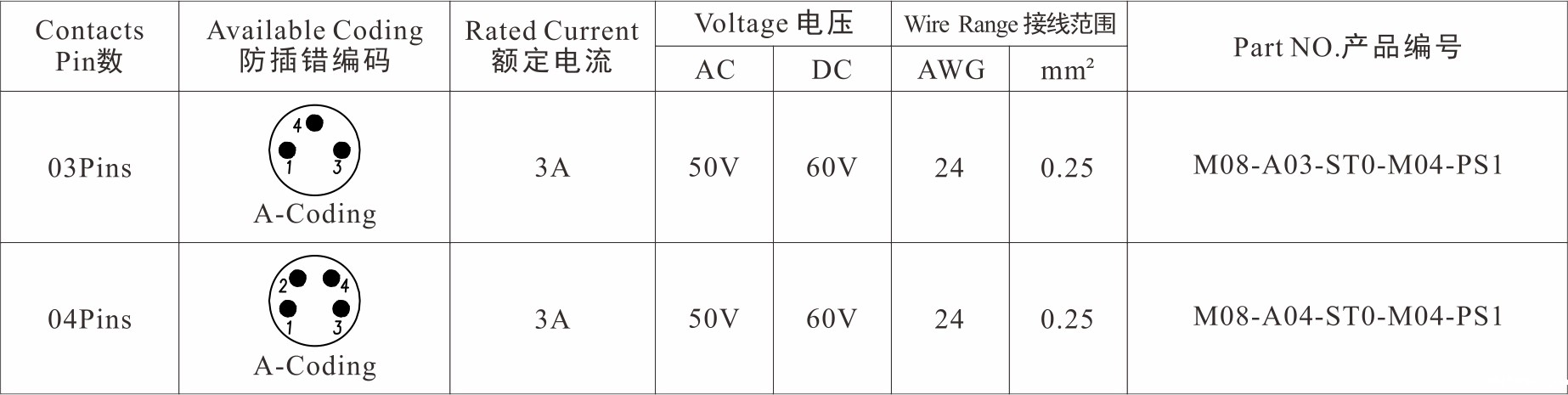 Part No 产品编码:M08-X**-ST0-M04-PS1