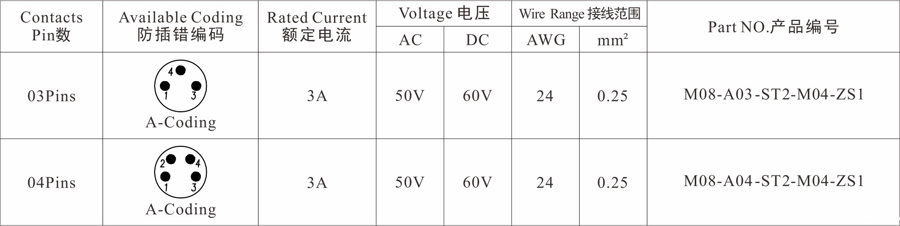 Part No 产品编码:M08-X**-ST2-M04-ZS1