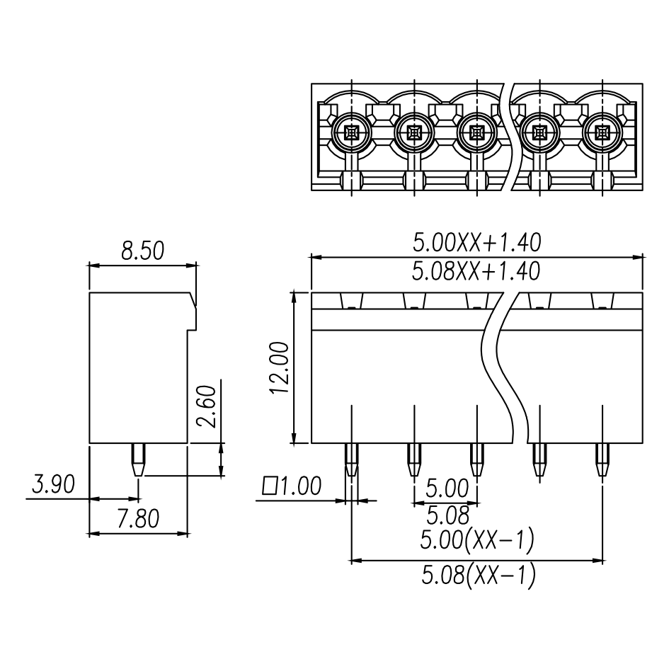 间距: 5.0 mm/5.08 mm