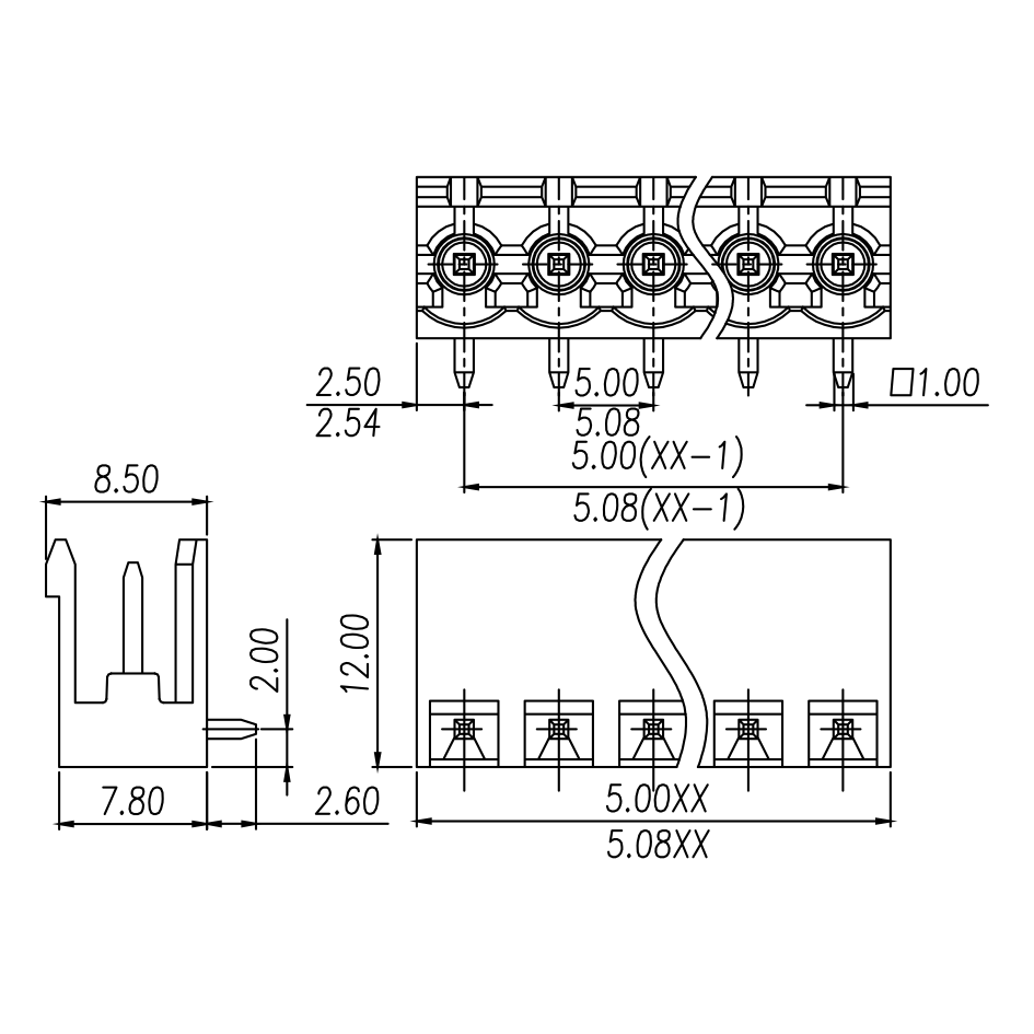 间距: 5.0 mm/5.08 mm