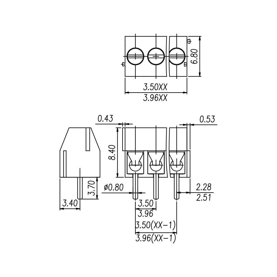 间距: 3.5 mm/3.96 mm
