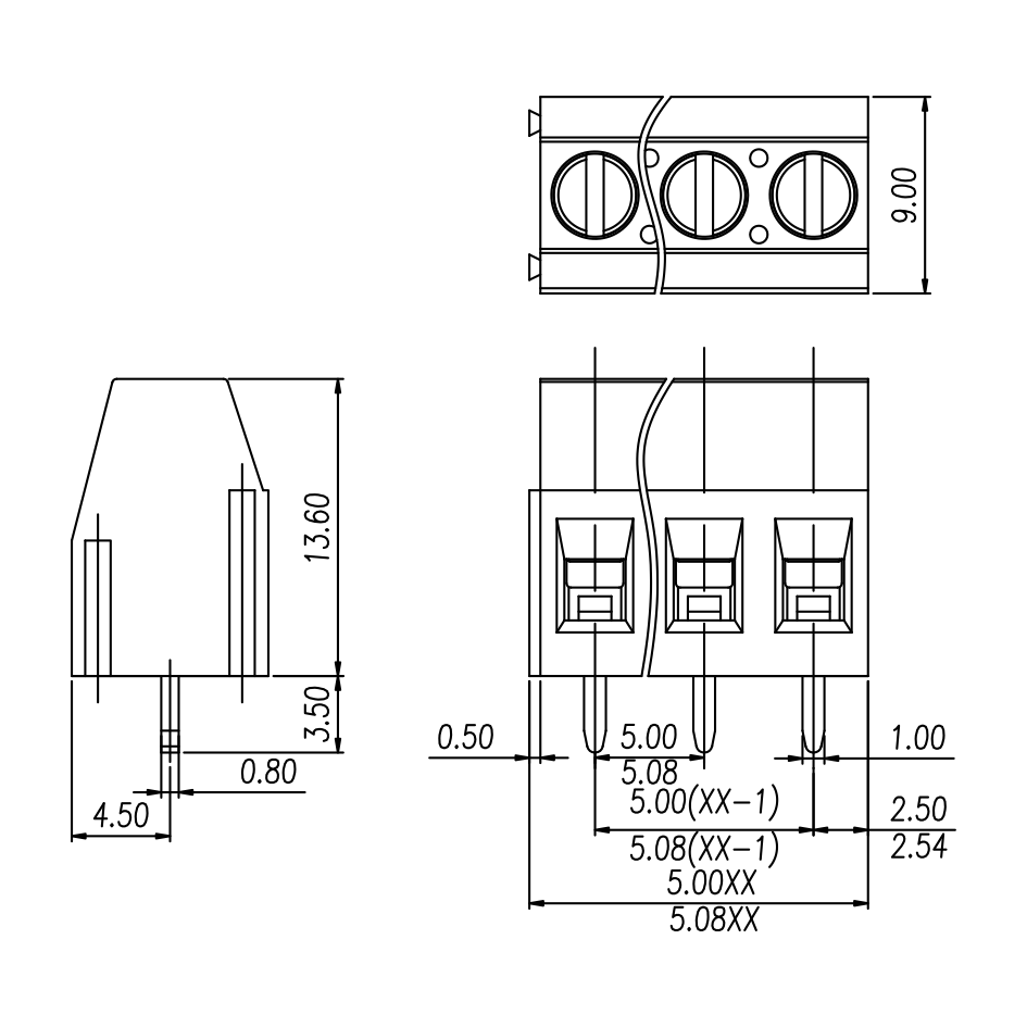 间距: 5.0 mm/5.08 mm