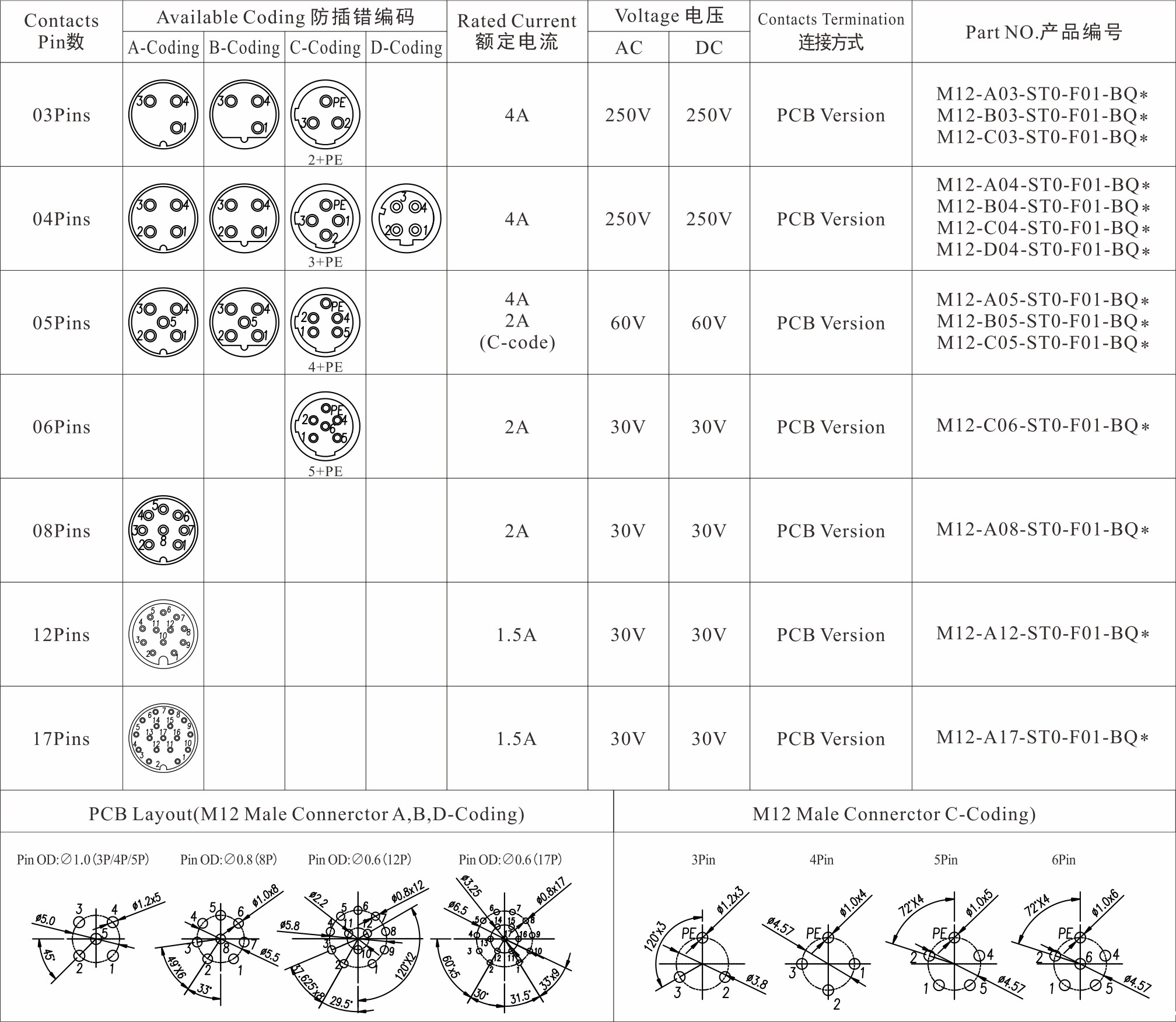 3/4Pins5Pins6/8Pins12/17Pins