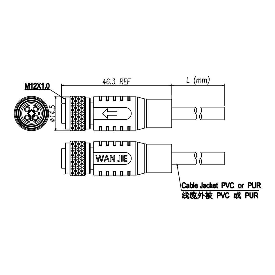 M12 Female Molded Cables, S-T-K-L-M Coding, Straight