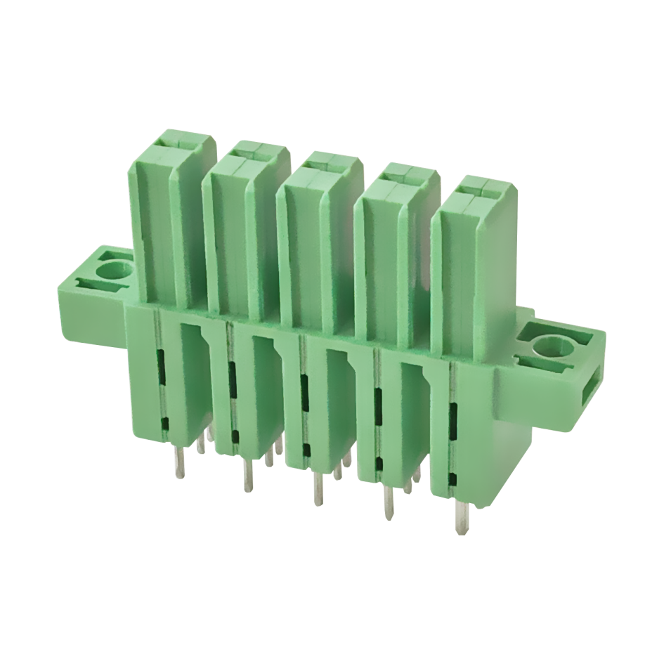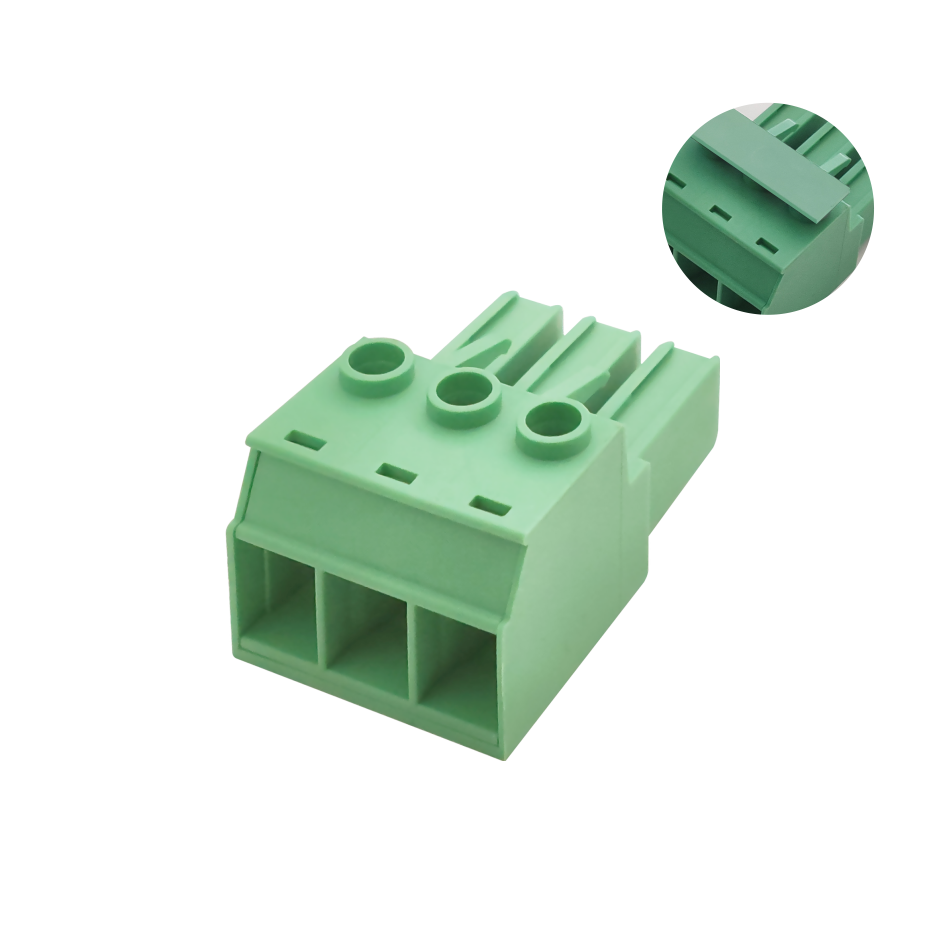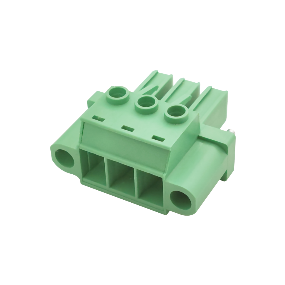 Plug-in terminal blocks, accept the wire size from 0.08mm2 to 16mm2. Available with different pitch from 2.5mm to 10.16mm. We can choose incoming direction, connecting direction and plug-in direction according to request. The product is designed in accordance with IEC60998, UL1059, CSAC22.2 NO. 158 standard.
