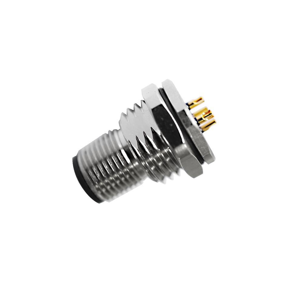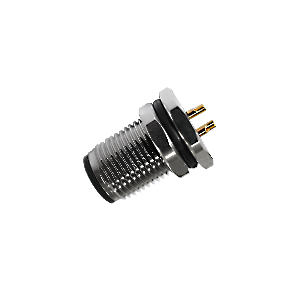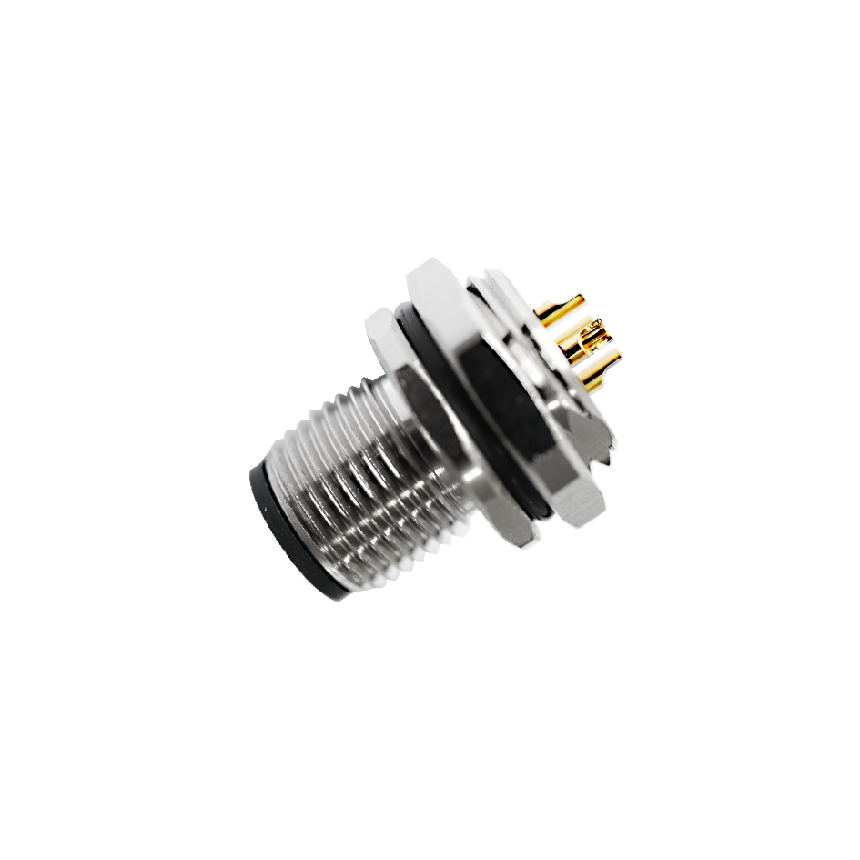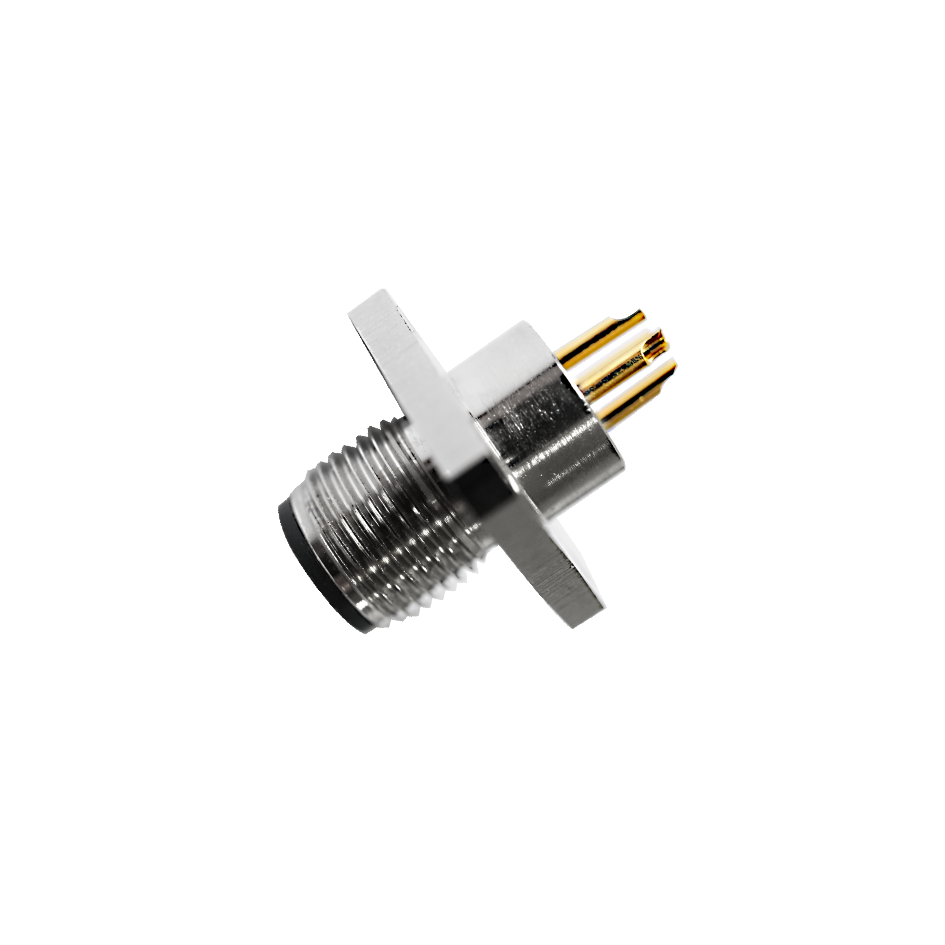 M12 Female Panel Mount, Solder Type, Rear Fastened