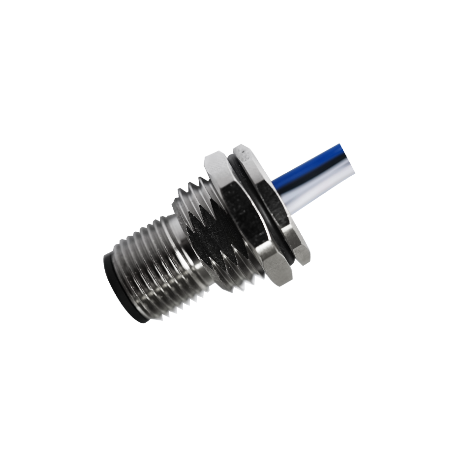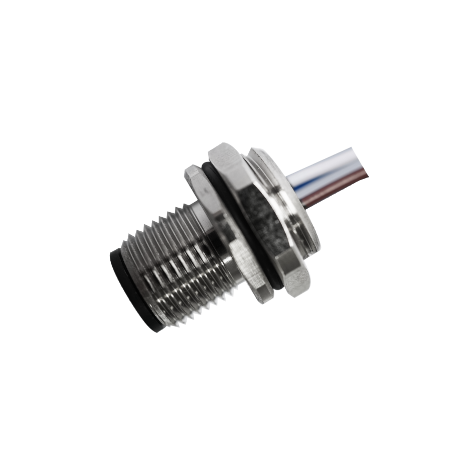 M12 Male Panel Mount, Solder Type, Rear Fastened, With Wires