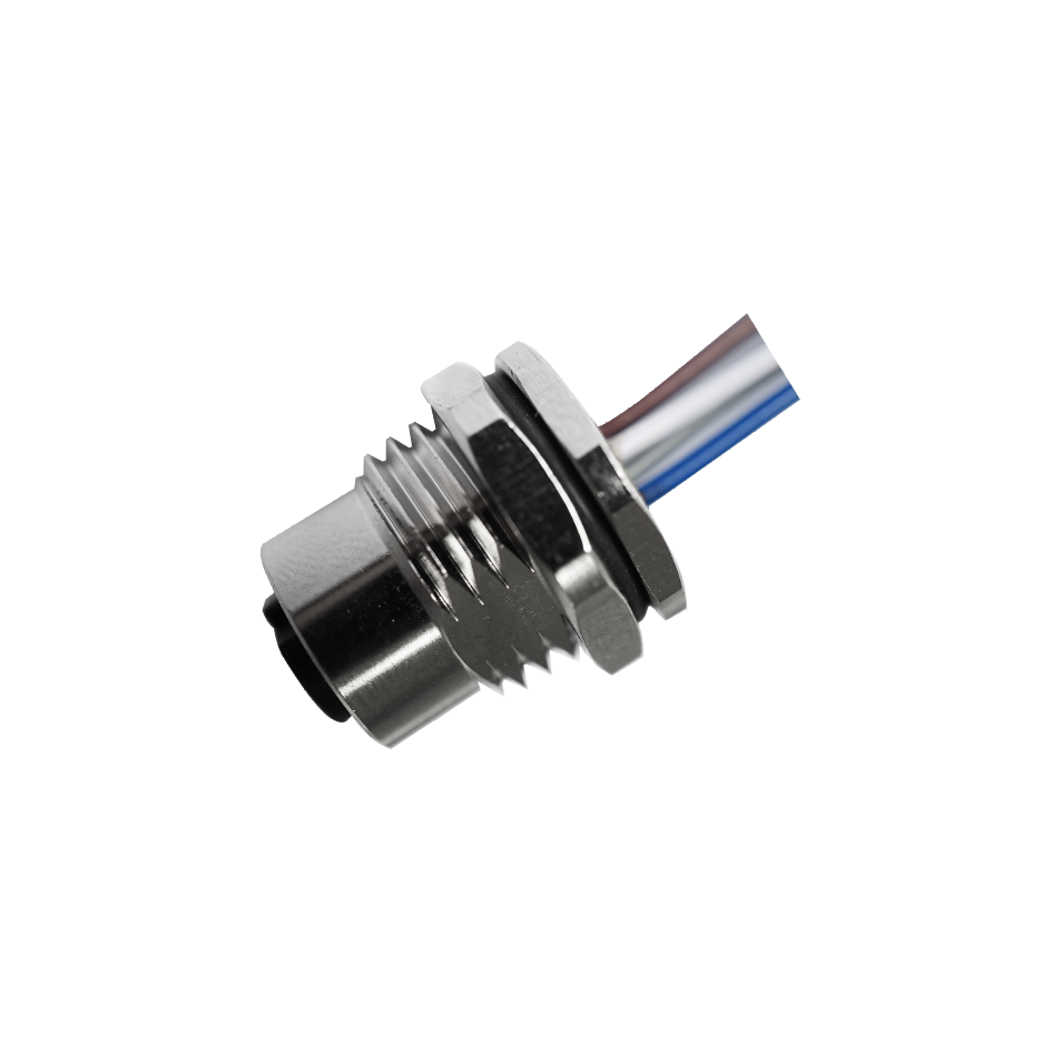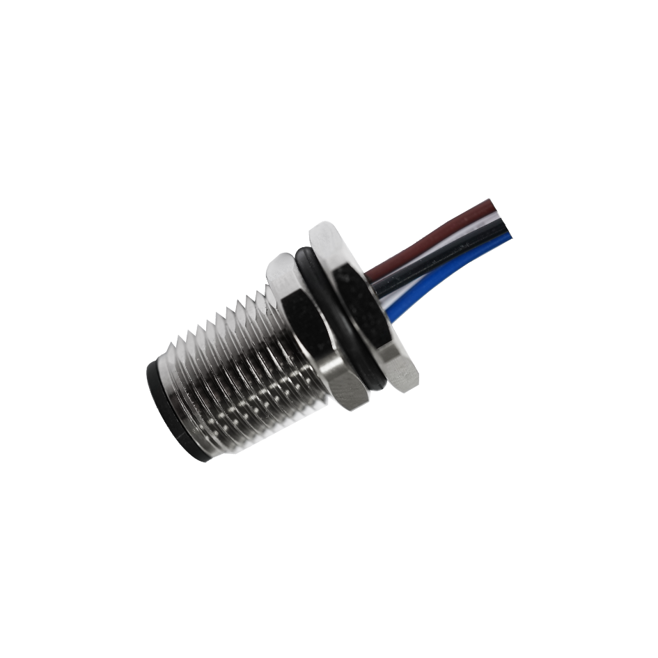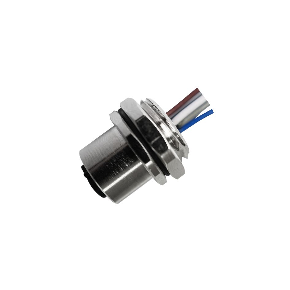M12 Female Panel Mount, Solder Type, Rear Fastened, With Wires