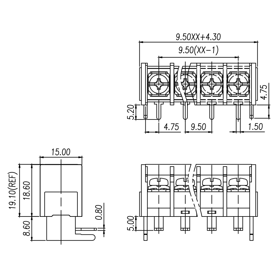 间距/极数 Pitch/Poles [mm]/[P]9.5/2-22