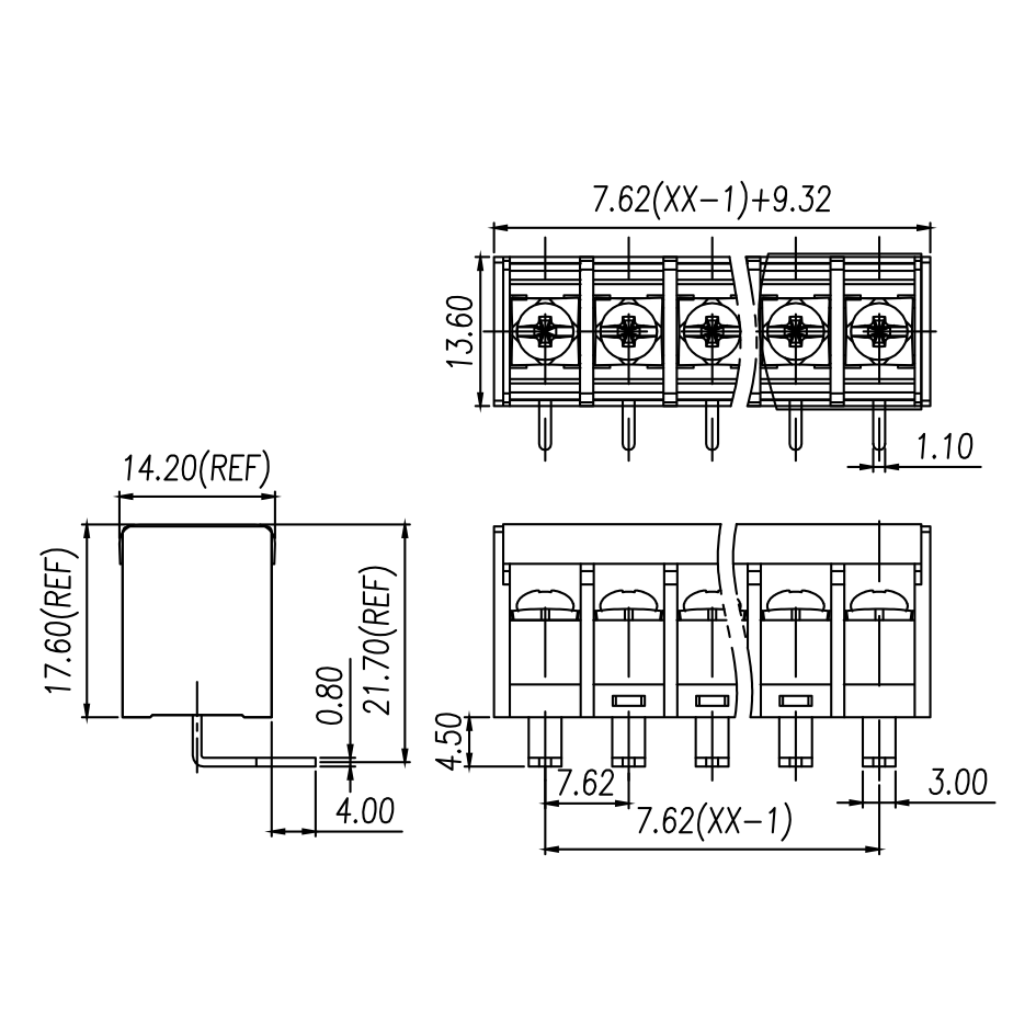 间距/极数 Pitch/Poles [mm]/[P]7.62/2-22