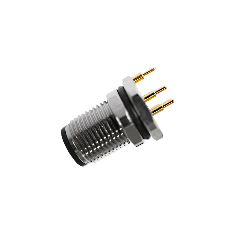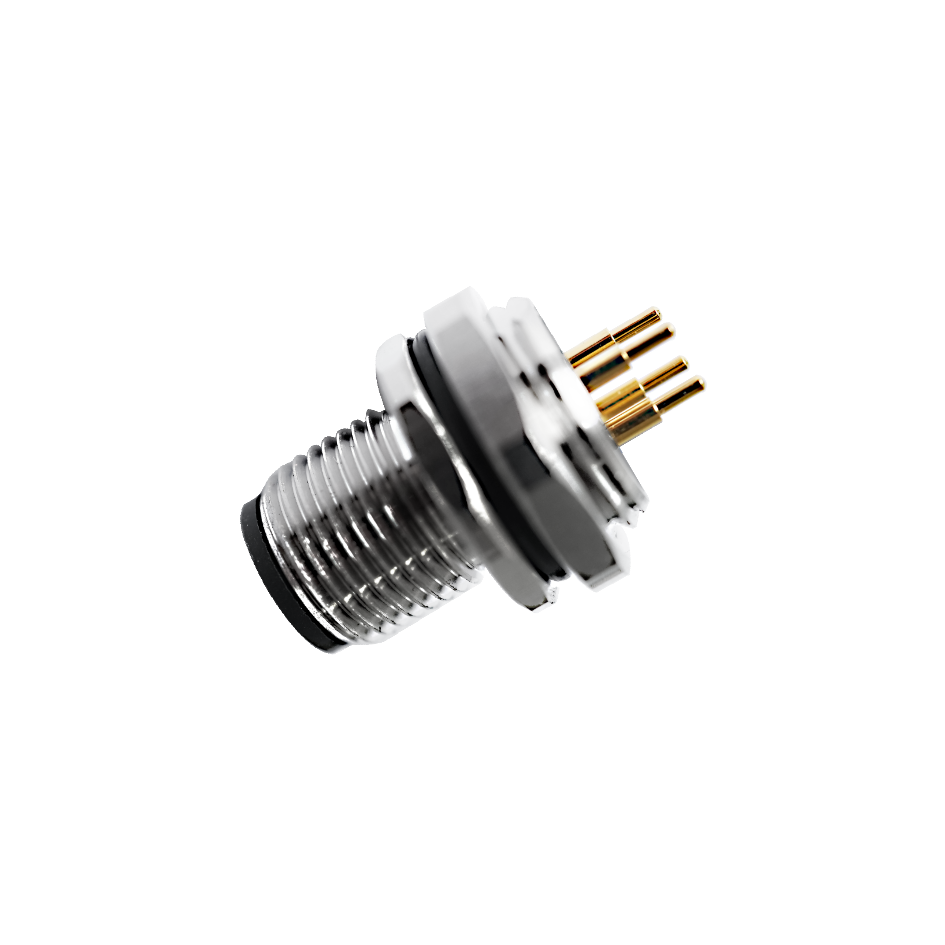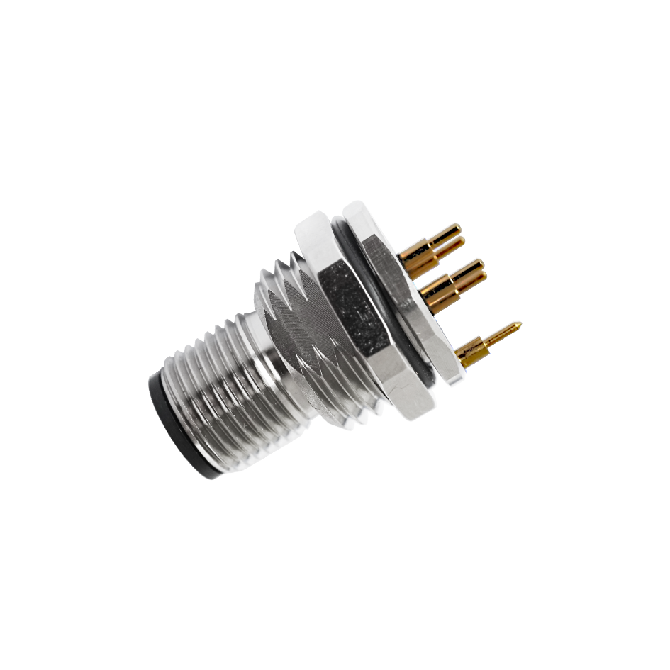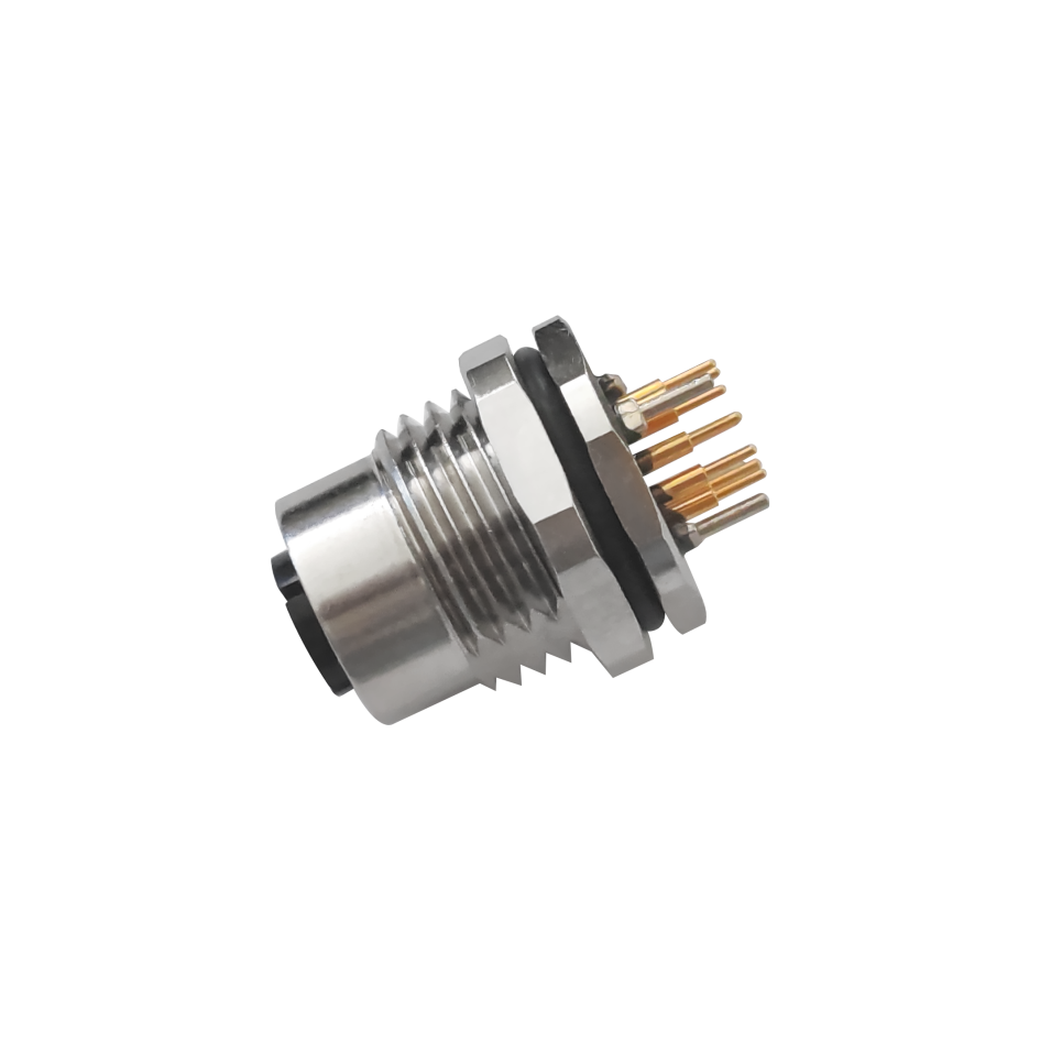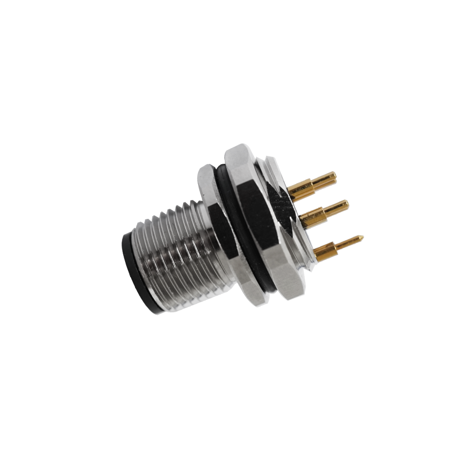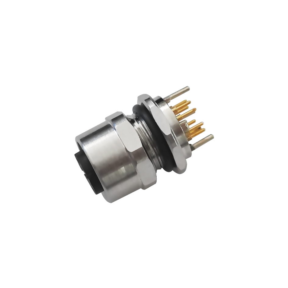 M12 母头面板式,PCB型,后锁安装,屏蔽针